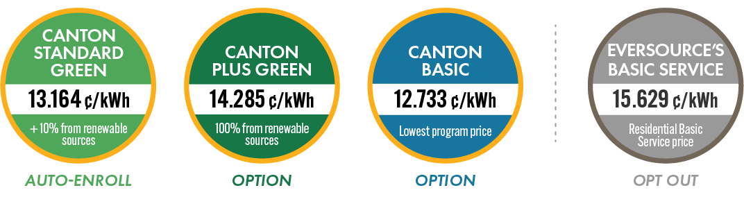 Canton Electricity Choice is a group electricity purchasing program from the Town of Canton for Canton residents and businesses. The program impacts the Supply charge on your Eversource electric bill.