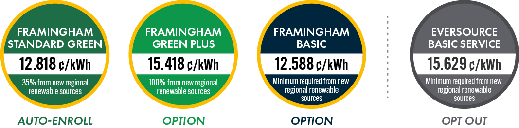 Winter heat pump rate:Beginning November 1, a new winter heat pump rate will be available for Eversource customers who install or use heat pumps in all or part of their homes. Customers can benefit from both the heat pump rate and Framingham Community Electricity at the same time. The heat pump rate will impact the delivery charges on the bill. Framingham Community Electricity impacts the supply charge on the bill. If you installed your heat pumps through Mass Save in 2019 or later, you will automatically receive the new heat pump rate in November. All other customers must submit an application to Eversource to receive the heat pump rate. |