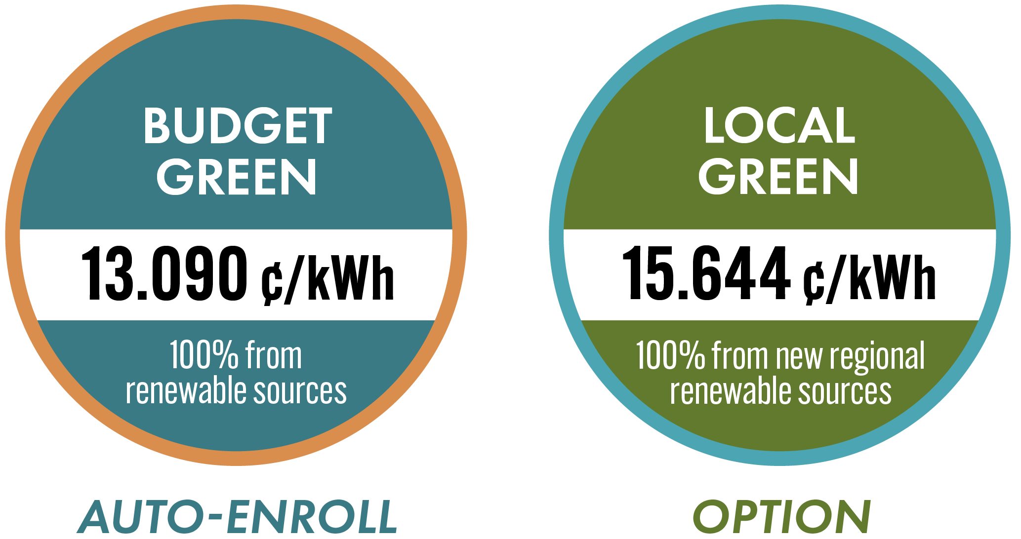 Both options provide 100% of your electricity from renewable sources. With Budget Green, your electricity comes from a mix of renewable sources located both within and outside of New England. With Local Green, your electricity comes from renewable sources that are all located within the New England region, which supports local jobs and builds demand for more renewable energy on our local grid.