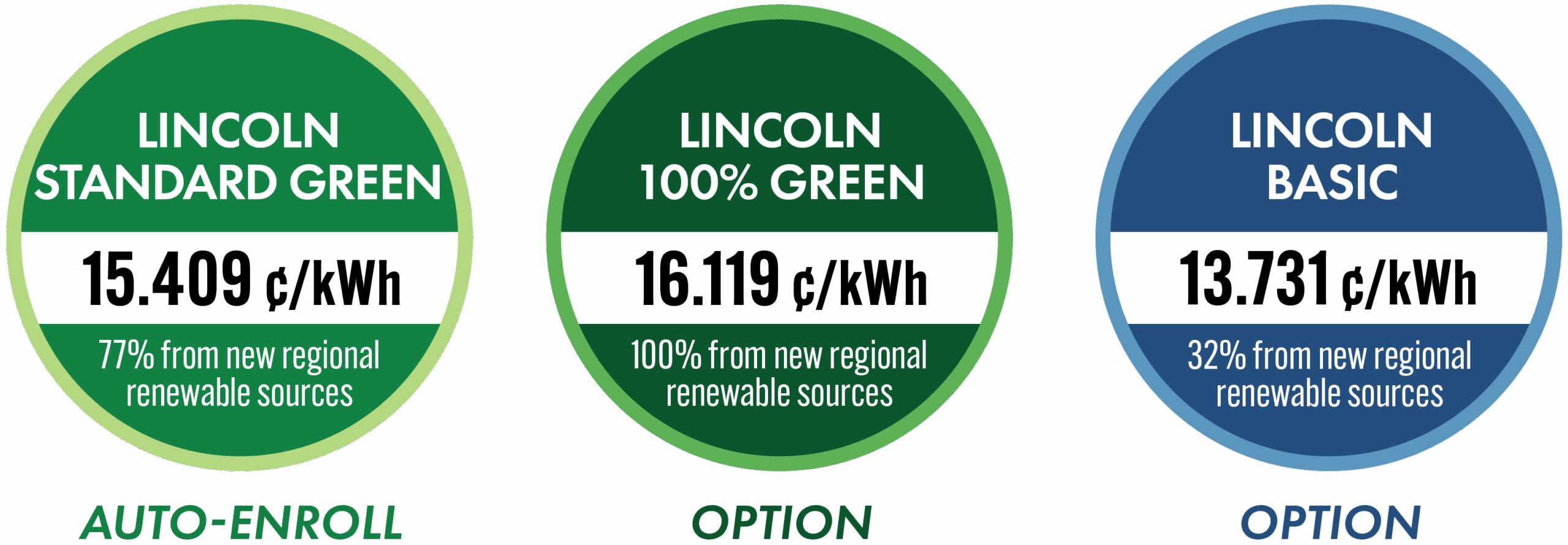 Lincoln Green Energy Choice prices will decrease in January as the current electricity supply contract ends and a new, 24-month contract goes into effect. All participants will see lower prices. See the new prices.