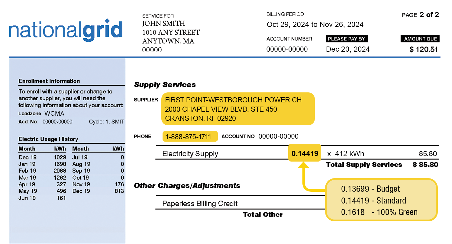 Westborough Power Choice is a group electricity buying program for Westborough residents and businesses. The program changes the price that is used to calculate the Supply Services portion of your National Grid electric bill.
